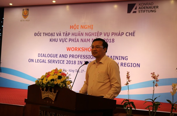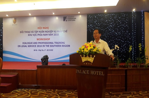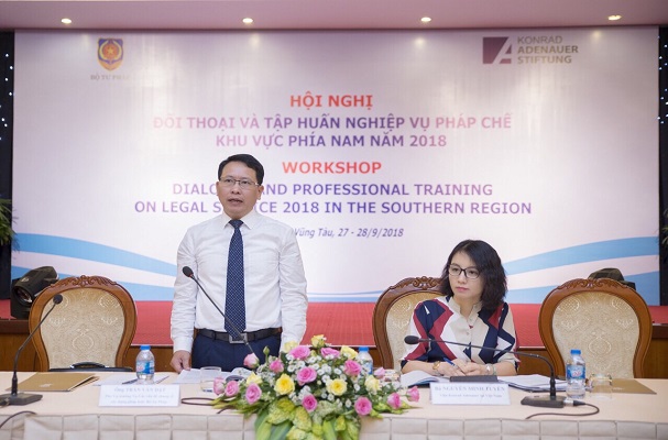 Trong 02 ngày 27 - 28/9, tại Thành phố Vũng Tàu, tỉnh Bà Rịa - Vũng Tàu, Bộ Tư pháp phối hợp với với Viện Konrad - Adenauer - Stiftung (Viện KAS), Cộng hòa liên bang Đức tại Việt Nam tổ chức Hội nghị đối thoại và tập huấn nghiệp vụ pháp chế khu vực phía Nam năm 2018. Ông Phan Chí Hiếu, Thứ trưởng Bộ Tư pháp và ông Peter Girke, Trưởng đại diện Viện KAS, Cộng hòa Liên bang Đức tại Việt Nam đồng chủ trì Hội nghị.