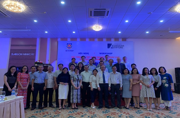 Vừa qua, tại Ninh Thuận, Bộ Tư pháp đã phối hợp với Viện Konrad - Adenauer - Stiftung (Viện KAS), Cộng hòa Liên bang Đức tại Việt Nam tổ chức Hội nghị đối thoại và tập huấn nghiệp vụ pháp chế khu vực phía Nam năm 2020. Ông Phan Chí Hiếu, Thứ trưởng Bộ Tư pháp và ông Peter Girke, Trưởng đại diện Viện KAS, Cộng hòa Liên bang Đức tại Việt Nam đồng chủ trì Hội nghị. Tham dự Hội nghị có khoảng 250 đại biểu gồm các lãnh đạo Sở Tư pháp, người làm công tác xây dựng pháp luật, công tác pháp chế tại 32 địa phương khu vực phía Nam.