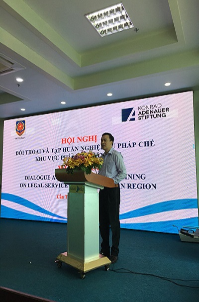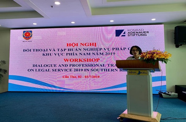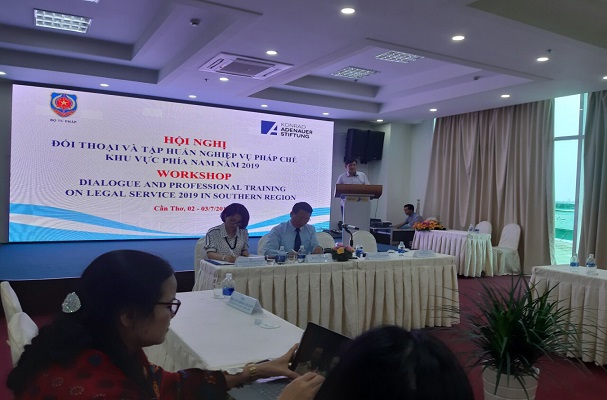 Trong 02 ngày 02-03/7/2019, tại Thành phố Cần Thơ, Bộ Tư pháp phối hợp với Viện Konrad - Adenauer - Stiftung (Viện KAS), Cộng hòa liên bang Đức tại Việt Nam tổ chức Hội nghị đối thoại và tập huấn nghiệp vụ pháp chế khu vực phía Nam năm 2019. Ông Nguyễn Hồng Tuyến, Vụ trưởng Vụ Các vấn đề chung về xây dựng pháp luật (Bộ Tư pháp) và bà Nguyễn Minh Tuyến, Chánh Văn phòng Viện KAS, Cộng hòa Liên bang Đức tại Việt Nam đồng chủ trì Hội nghị.