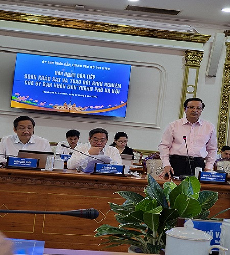 Để tiếp tục Chương trình làm việc của Đoàn khảo sát, trao đổi kinh nghiệm tại Thành phố Hồ Chí Minh, thành phố Đà Nẵng và tỉnh Quảng Nam do Ủy ban nhân dân thành phố Hà Nội và Bộ Tư pháp chủ trì thực hiện phục vụ việc nghiên cứu xây dựng Đề nghị xây dựng Luật Thủ đô, chiều ngày 09/8/2022, Đoàn khảo sát do ông Lê Hồng Sơn - Phó Chủ tịch thường trực Ủy ban nhân dân thành phố Hà Nội và ông Nguyễn Hồng Tuyến - Vụ trưởng Vụ Các vấn đề chung về xây dựng pháp luật, Bộ Tư pháp đồng Trưởng đoàn đã làm việc tại Ủy ban nhân dân thành phố Hồ Chí Minh. Tham gia Đoàn khảo sát là đại diện Lãnh đạo các Bộ, Sở thuộc thành phố Hà Nội, các chuyên gia xây dựng Luật Thủ đô.