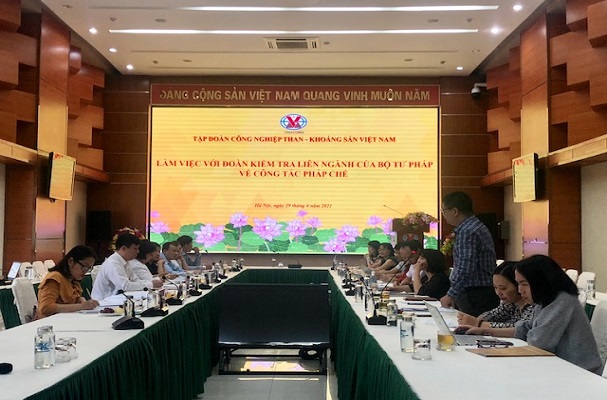 Tiếp nối chuỗi hoạt động kiểm tra, khảo sát của Bộ Tư pháp tại một số Bộ, ngành, địa phương và doanh nghiệp nhà nước về tình hình thực hiện công tác pháp chế và xây dựng pháp luật, ngày 29/4/2021, Đoàn công tác liên ngành (Bộ Tư pháp, Văn phòng Chính phủ, Bộ Nội vụ) đã làm việc với Tập đoàn Dầu khí quốc gia Việt Nam và Tập đoàn Công nghiệp Than - Khoáng sản Việt Nam về việc thực hiện công tác pháp chế theo Nghị định số 55/2011/NĐ-CP ngày 04/7/2011 quy định chức năng, nhiệm vụ, quyền hạn và tổ chức bộ máy của tổ chức pháp chế.